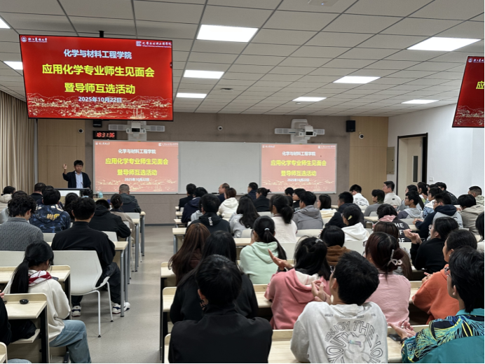 10月22日晚6:30,应用化学专业2025级新生师生见面会暨导师互选活动在教1-601举行。活动特别邀请了教务处处长郭建忠教授、研究生院副院长杨胜祥教授和高层次人才胡勇教授出席,应用化学专业2025级新生以及化学、材料科学与工程学科全体教师参加了此次活动。活动由应用化学专业建设执行负责人王星老师主持。