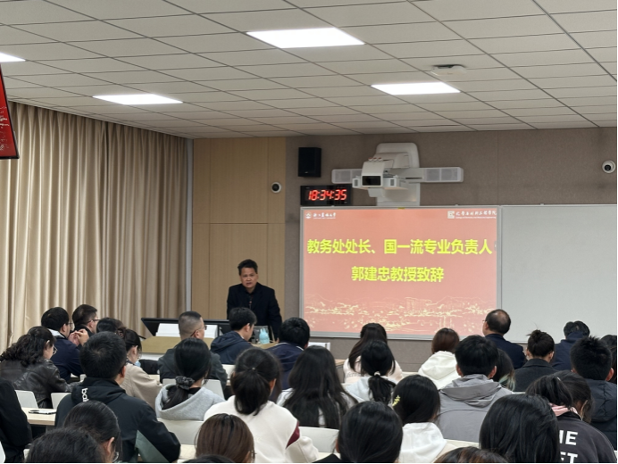 会上,教务处处长、应用化学国一流专业负责人郭建忠教授对2025级应用化学专业新生的到来表示热烈欢迎。同时他勉励同学们要做好大学四年的生涯规划,并提出三点期望:一是珍惜当下,踏踏实实过好每一天;二是高度自信,不气馁、不放弃;三是勇往直前,争取每天都有进步。