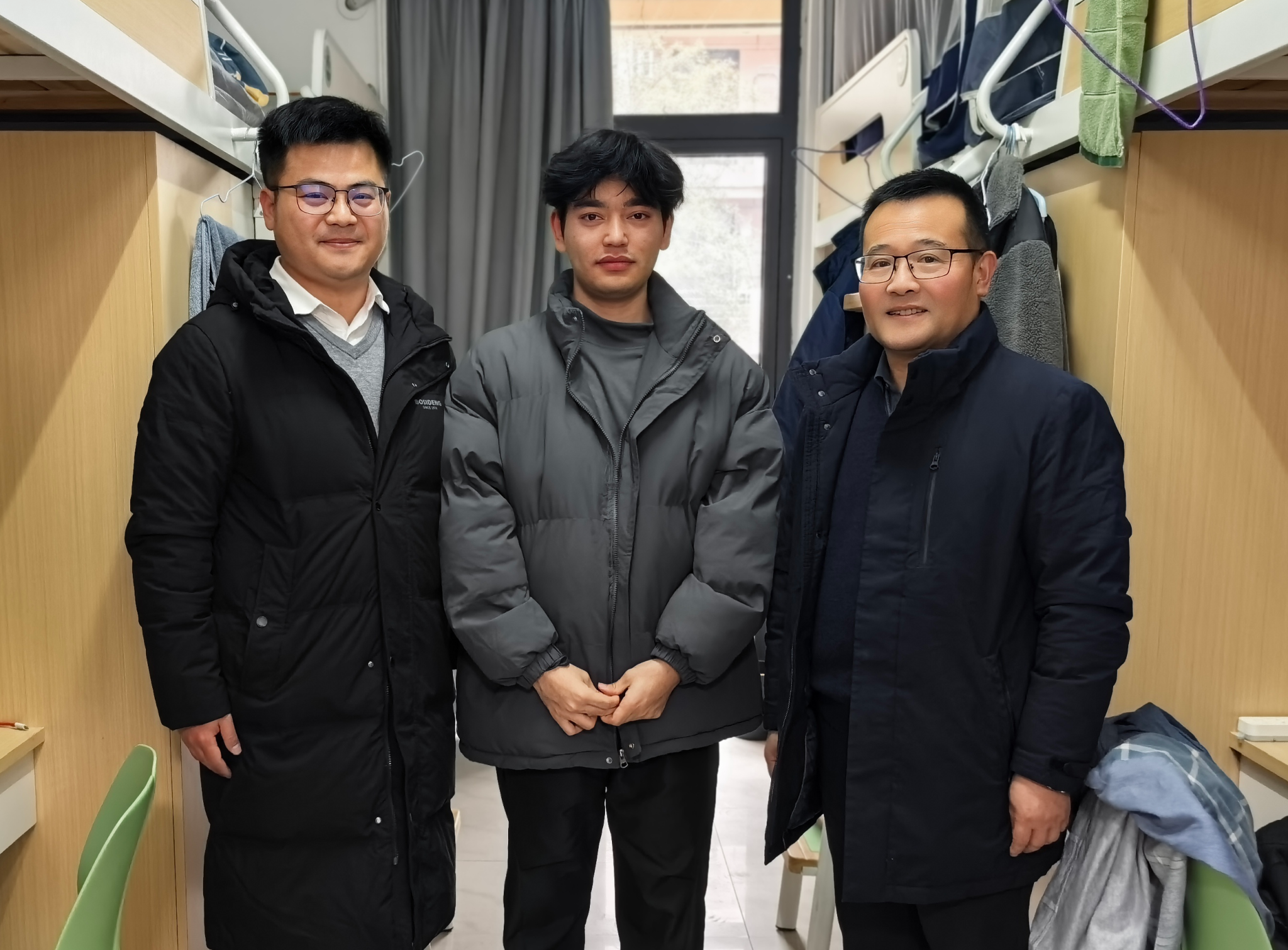 慰问过程中,学院领导再三叮嘱学生要牢固树立安全意识,注意用电用水安全和实验室安全。提高防范诈骗意识,自觉遵守学校寒假期间各项管理规定。同时鼓励学生要合理规划假期时间,兼顾学习提升与休息调整,度过一个充实有意义的假期。潘国忠最后强调:“学院永远是大家最坚实的后盾,遇到任何困难都要第一时间联系辅导员或老师,学院会尽全力为大家排忧解难。”
