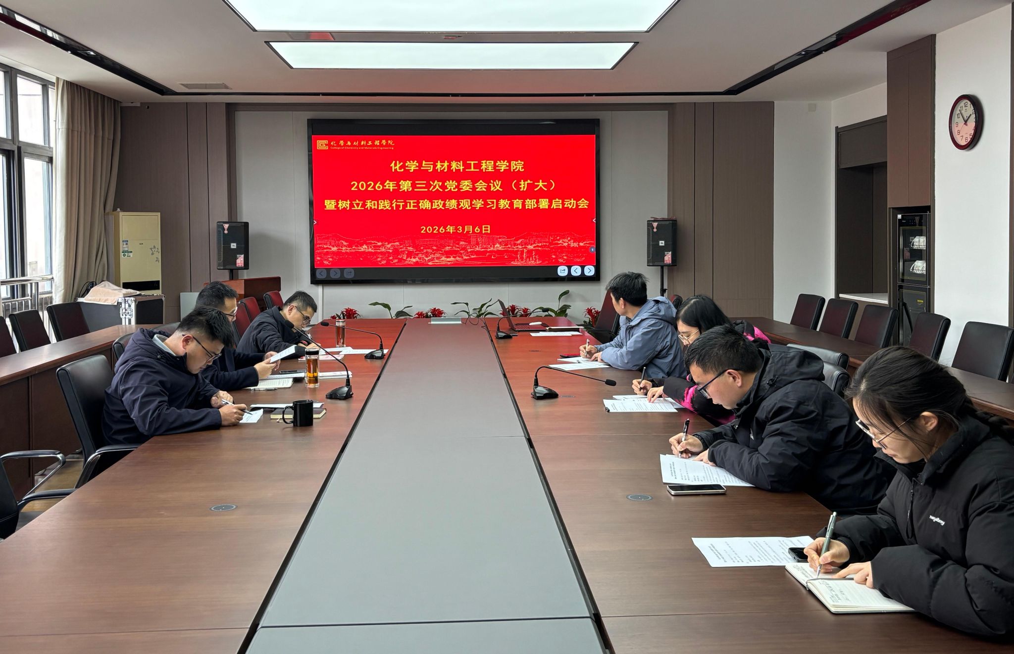 3月6日,化学与材料工程学院召开党委(扩大)会议暨树立和践行正确政绩观学习教育工作启动部署会。学院党委书记潘国忠主持会议并讲话,学院党委班子成员、各教工党支部书记等参加会议。