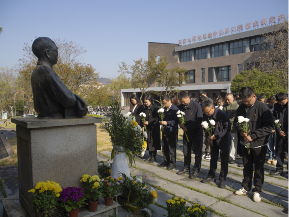 活动现场气氛庄严肃穆,全体人员手持素雅白菊,在塑像前静默肃立,向张齐生院士致以深切哀思。在追忆环节,林业工程研究生第二党支部党员代表深情讲述了张院士的生平事迹,带领大家重温了院士“做人比做学问更重要”的师者风范,以及他扎根田间地头、服务竹农的科研初心,张院士爱国奉献、求真务实的精神深深感染了在场的每一位师生。
